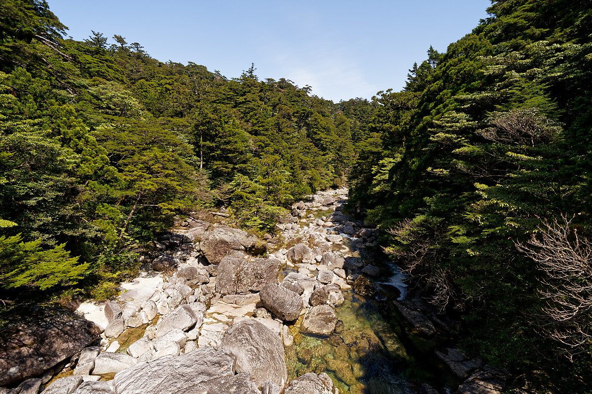 Logged for more than 500 years from the outside-in in a limited way (fallen trees provided enough material for a long time), the forest range from the subtropical to the subarctic depending on the altitude, providing a wide variety of flora from the usual broad-leaved trees, to Yakusugi cedars, to conifers, to grasslands.